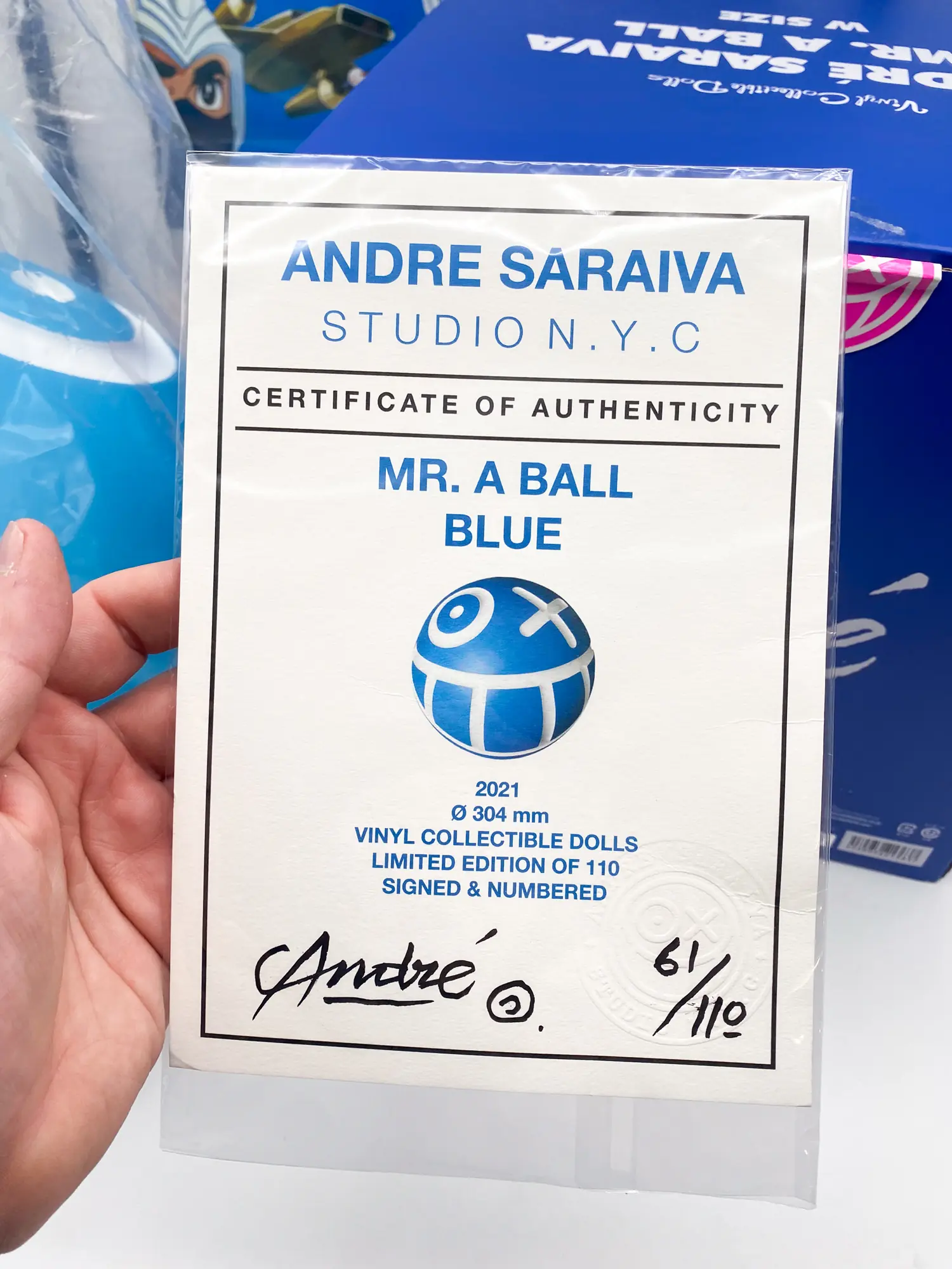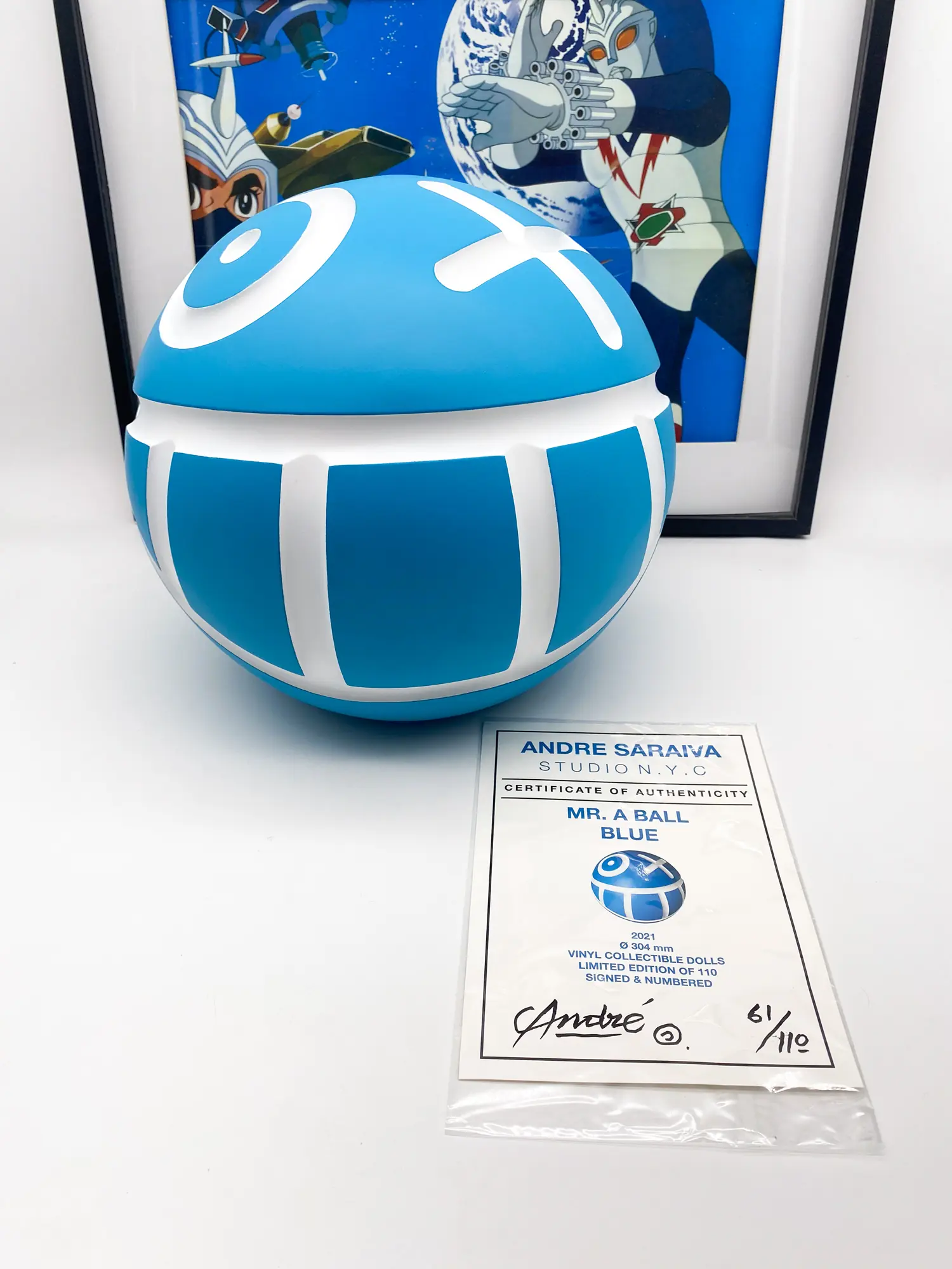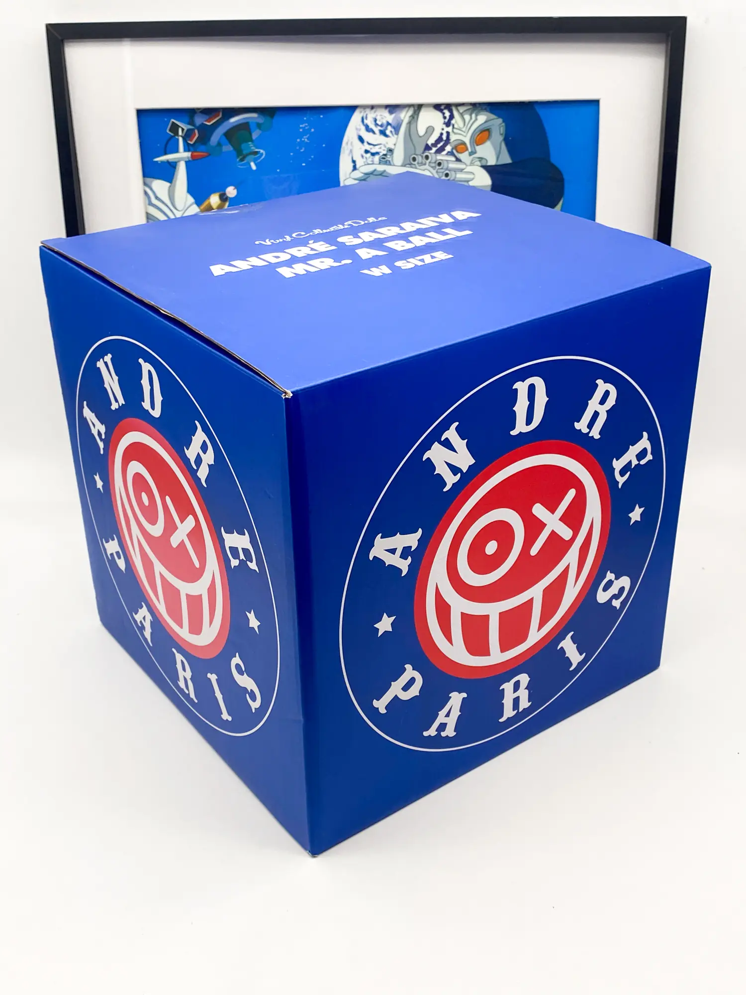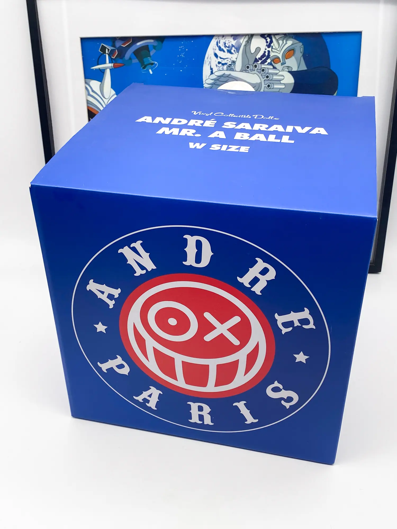 « Mr. A Ball » (Coloris Bleu) par l’artiste street-art André Saraiva, produite en collaboration avec Medicom Toy (série Vinyl Collectible Dolls).