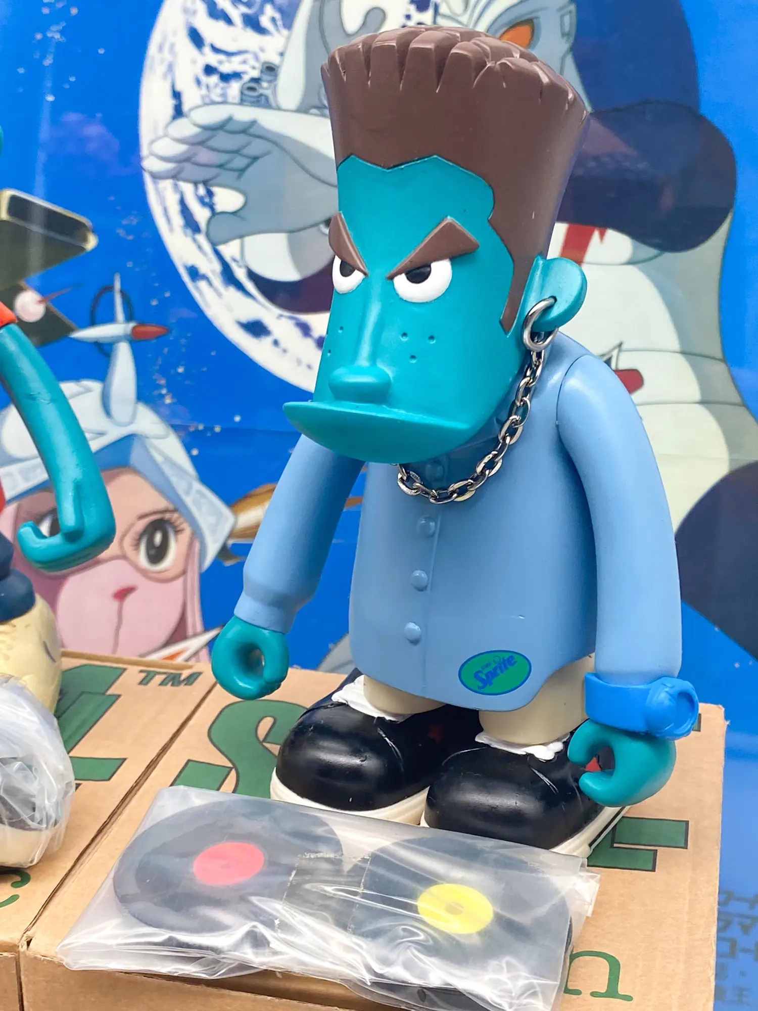 • Scratch (La figurine bleue) : Le DJ du groupe, livrée avec sa table de mixage/controller.