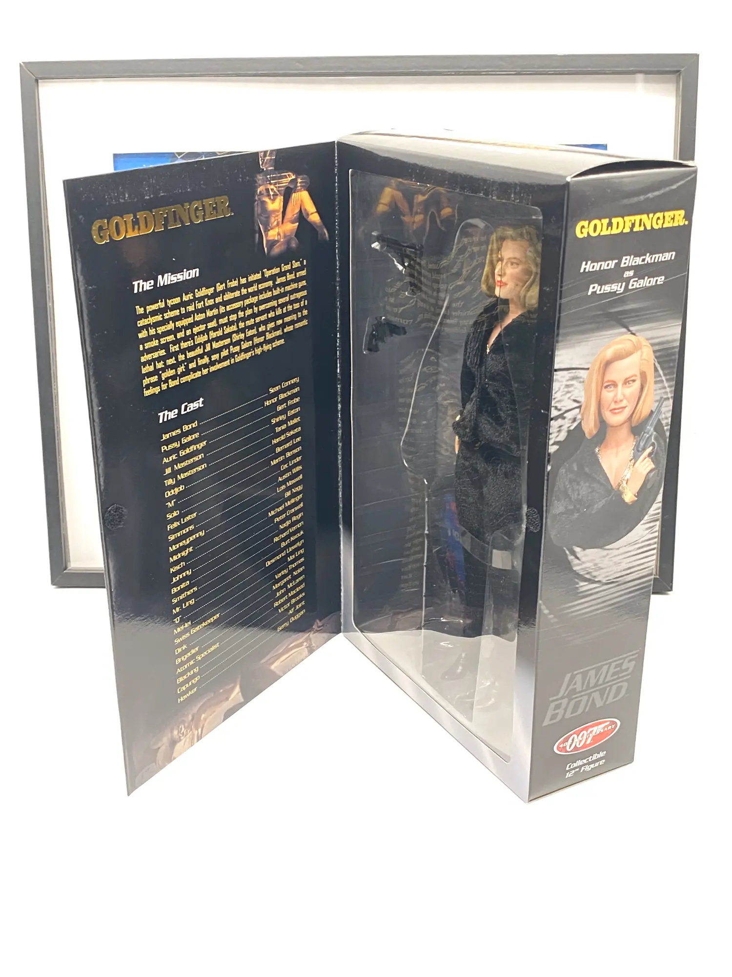 - Accessoires inclus : Armes d’époque (revolver et pistolet), socle de présentation logoté « Goldfinger » et costume en tissu haute qualité.