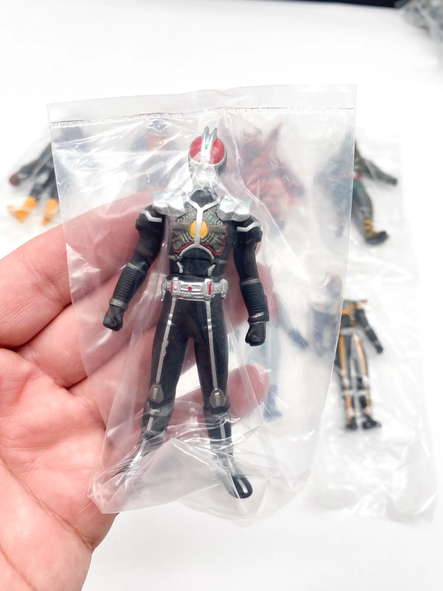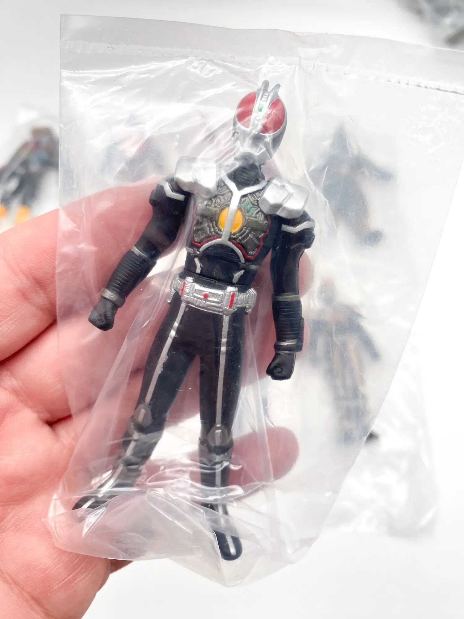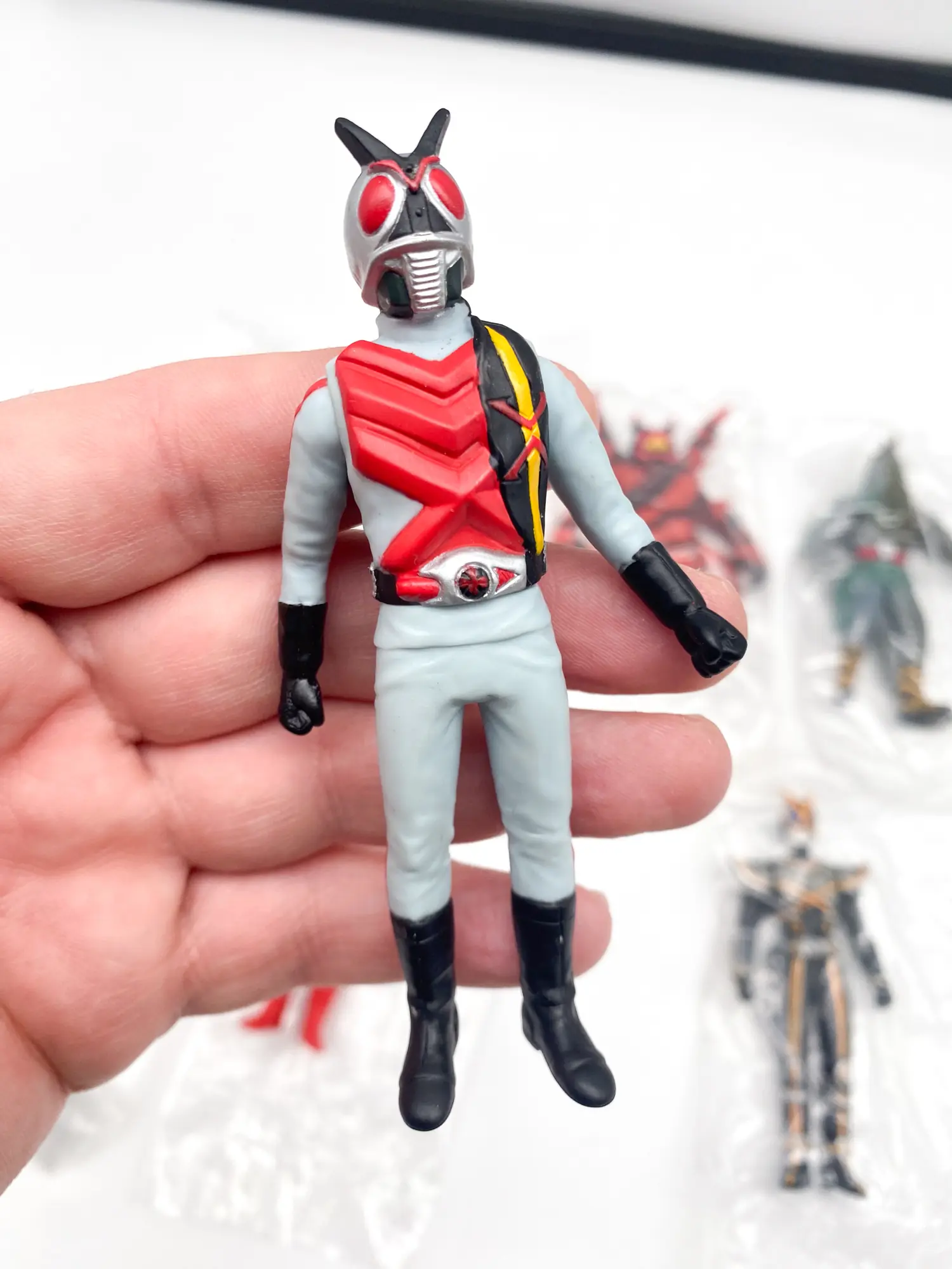 Voici le set complet Kamen Rider Sofubi Road EPISODE:3, sorti en 2002. Cette série est une lettre d’amour aux figurines « Pachi » et aux premiers jouets de la Toei. Elle réunit le célèbre Kamen Rider X et l’animalier Kamen Rider Amazon, accompagnés de leurs ennemis les plus mythiques. Une esthétique volontairement « vintage » qui capture parfaitement le grain des séries originales.