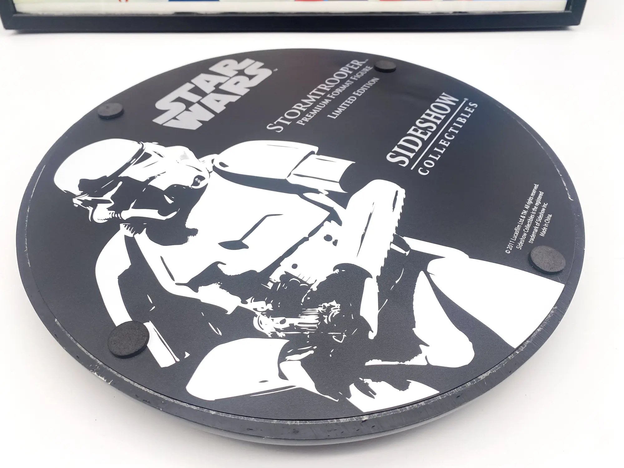 Attention, le socle en dessous est bombé,Je suppose que dû à une erreur en usine au moment de couler la résine. Il présente toutefois bien en display.